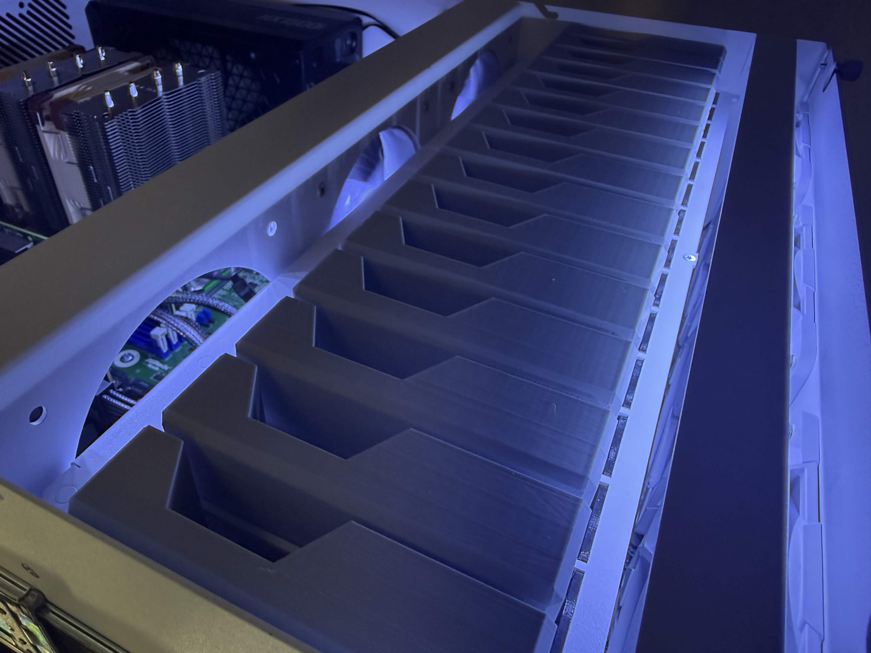The final obvious issue with doing this is the fans on the HL15 no longer are powered. This was simply solved by removing the 3D printed fan header holders and connecting the Fans directly to the motherboard. The added benefit here is all the fans can also be controlled and ramped up when the added airflow is actually needed. Something I truly believe should be an option out of the box from 45Drives.