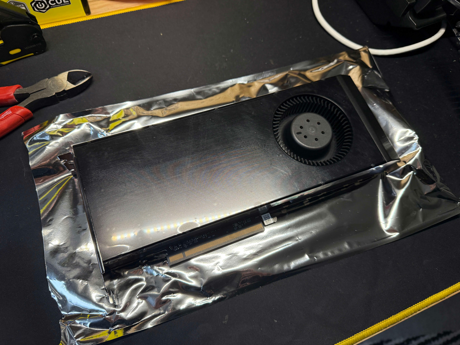 This GPU is a custom, modified Nvidia 4090 modified and built by GPvLab. Cutting their teeth on repairing broken GPUs and other BGA electronics, Greg is one of very few supplies of these cards within the United States. While still using the Chinese created PCB boards, Greg ships the fully leaded 4090s, whereas the China direct cards are of the “D” variant - a dialed down version specially created for the Chinese market due to US Government export regulations. In depth performance measurement of these cards can be found here. While still expensive at $3,500 USD (03/16/2026), GPvLab’s 4090’s prove to be one of the most affordable, high-density vRAM GPUs obtainable to consumers at this time as these are true, 2 PCI slot width cards featuring their own blower fan and cooler. If you are interested in learning more about these cards and Greg Sky from GPvLab, he has a Youtube Channel showcasing the process of building these cards.