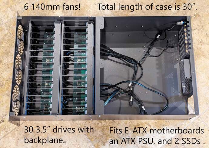 Seems at least one EATX Q30 was made, although perhaps with more involvement on the Protocase side than the 45Drives side. Notes say it was later sold on eBay.